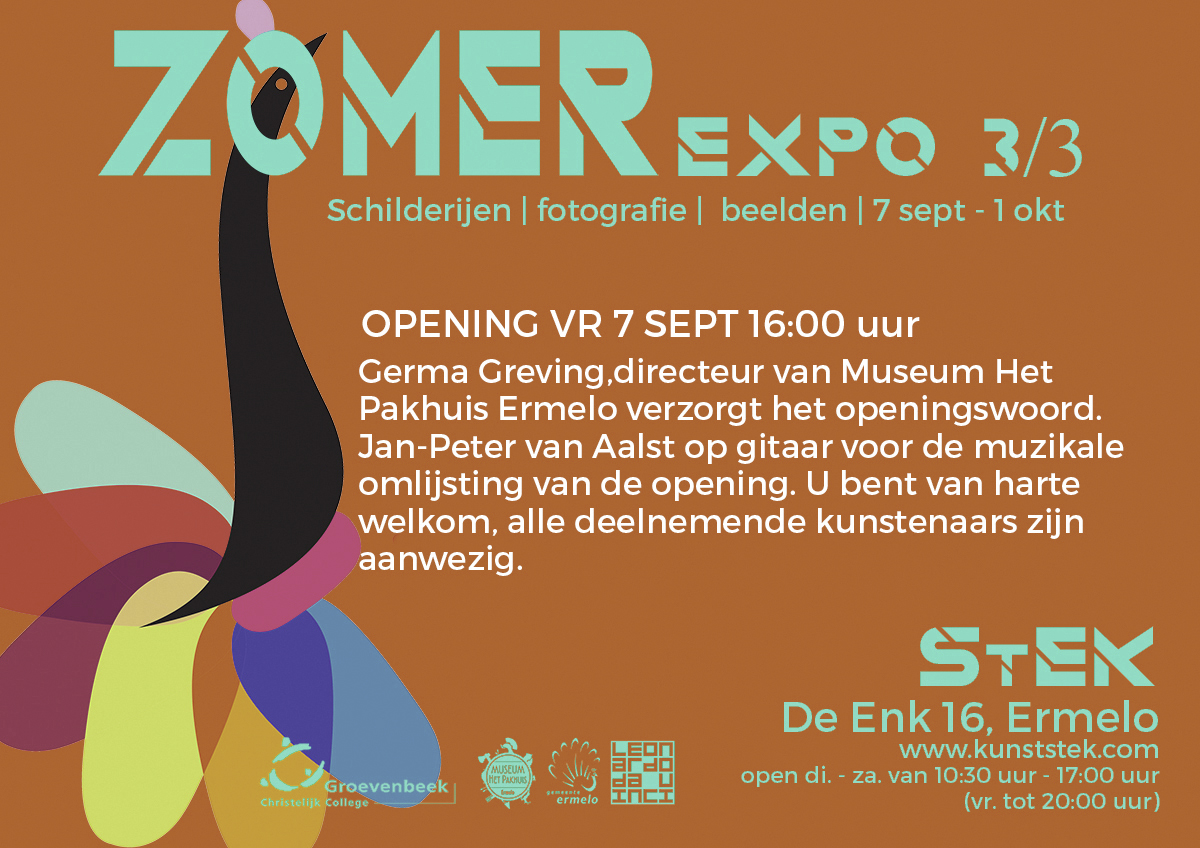 StEK en gast-kunstenaars uit de regio verzorgen deze keer de expositie in Galerie de Enk 16 te Ermelo. Bart Willemsen, gemeenteraadslid voor het CDA, verzorgt het openingswoord. Vrolijke muzikanten omlijsten de opening. Onder het genot van een hapje en een drankje kunt u alle deelnemende kunstenaars ontmoeten. Wij zien u vrijdag 5 oktober 17:00 graag!