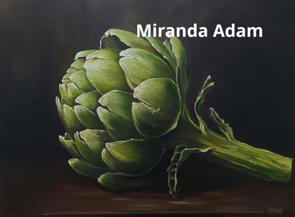 Miranda Adam (miranda-adam.nl) gebruikt zij onderwerpen uit de natuur, zoals groente en fruit. In verfijnd geschilderde stillevens weet ze de verschillende materialen en de manier waarop het licht valt nauwgezet en overtuigend vast te leggen.