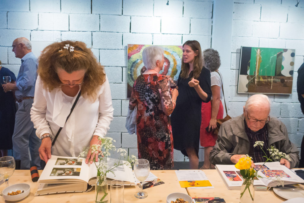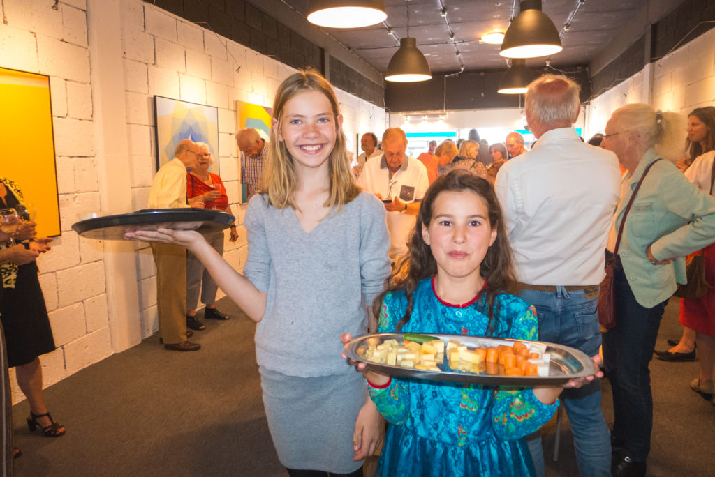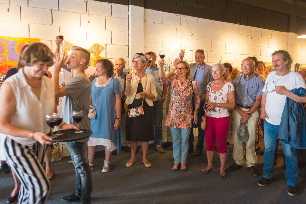 Gezellige drukte tijdens de opening van de jubileum expositie van Viktor Majdandzic zaterdag 12 mei 2018.