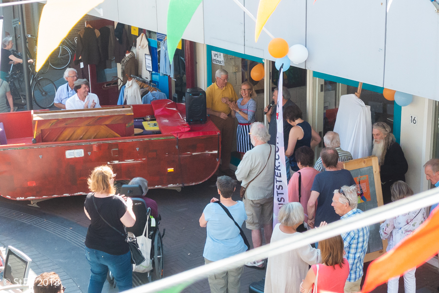 Poëtische opening van de eerste zomerexpositie in een reeks van drie. Dorpsdichter van Ermelo, Fiet van Beek heeft speciaal voor de galerie een gedicht geschreven en voorgedragen tijdens de opening. Na de onthulling van het gedicht is deze in de etalage van de galerie tentoongesteld. De muzikale bijdrage van John Vis maakte het geheel feestelijk en sfeervol. Aan het eind van de middag hebben John en Fiet samen het dorpslied van Ermelo gezongen in de Enk.